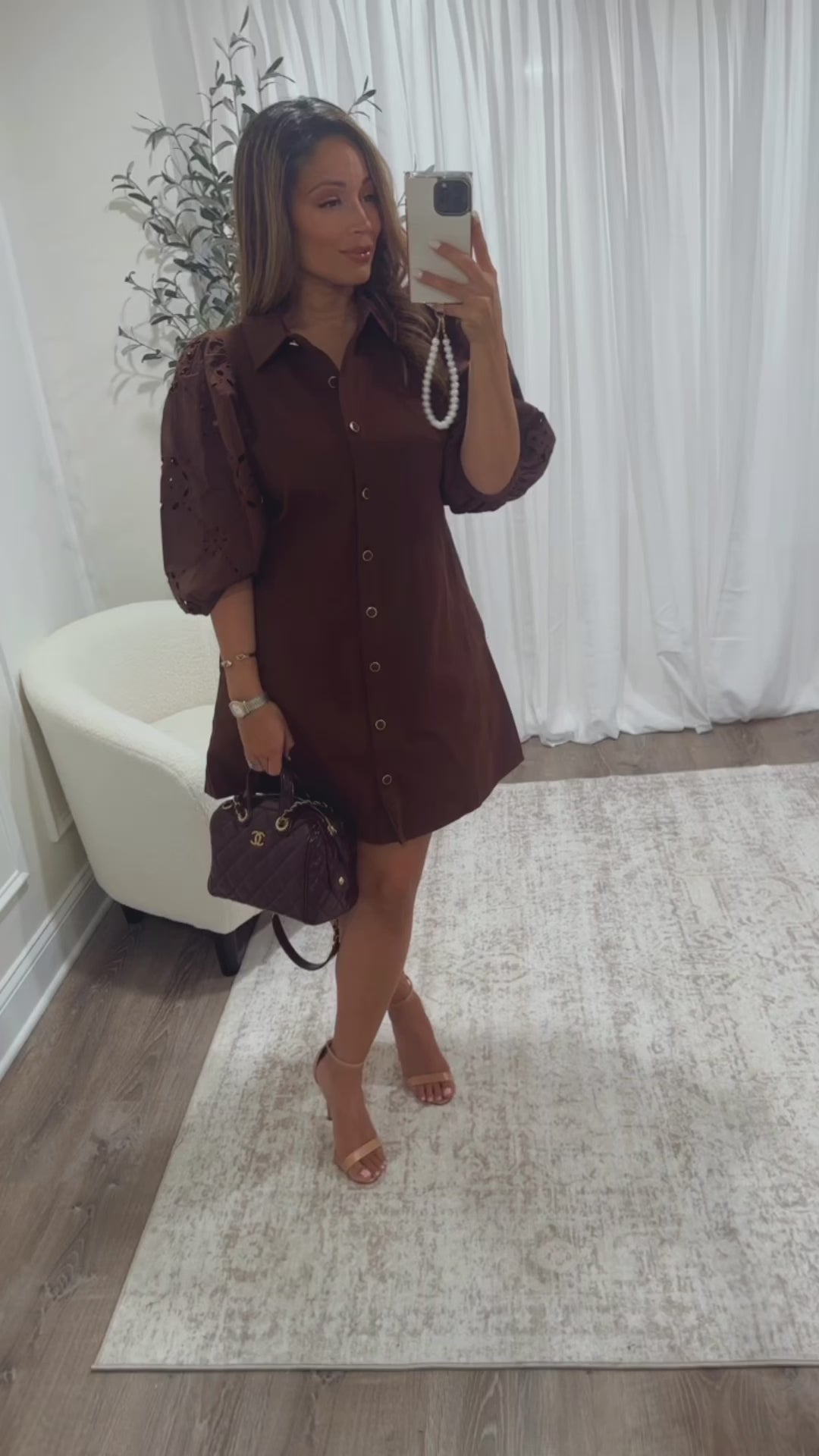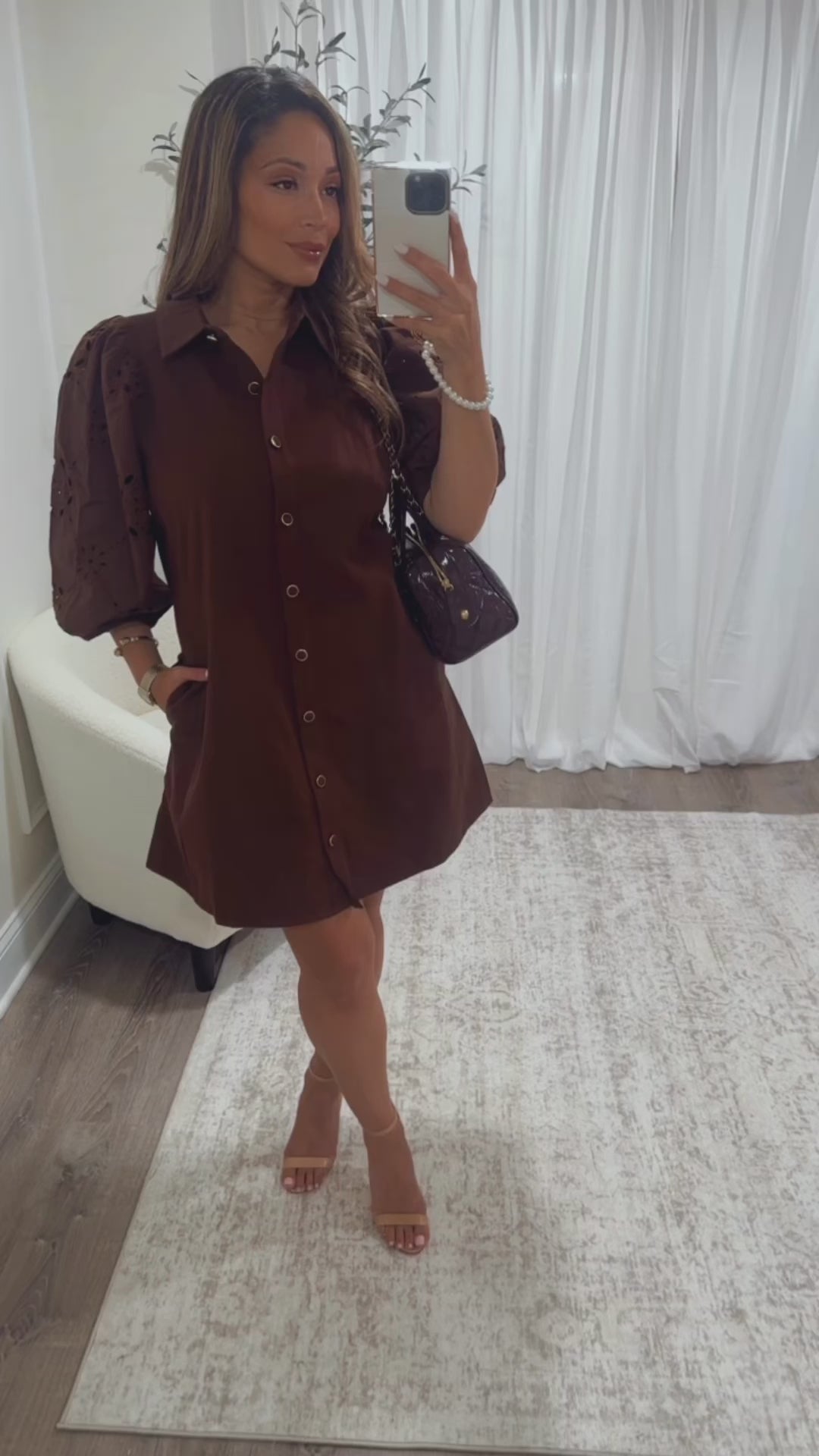Embrace autumn charm with the Spiced Coco Dress—a playful ¾ puff sleeve mini with a solid eyelet pattern. Featuring a crisp shirt collar and comfy elasticated sleeve openings, it’s ready for any fall adventure. The button-front adds a flirty touch, making this dress your new go-to for effortless style!