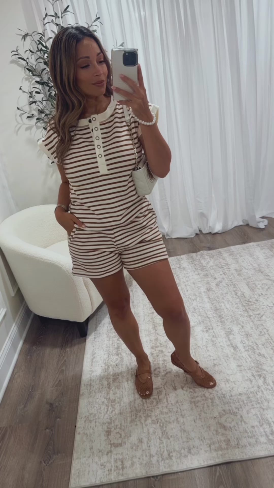 Stay effortlessly stylish and cozy in our new Sunny Escape Stripe set. Featuring Elastic Waist Knit Mini Shorts paired with their matching top. Perfect for running errands or lounging at home, this set combines comfort with a playful, chic vibe. The elastic waist ensures a snug fit while the soft knit fabric keeps you feeling relaxed all day long.