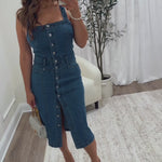 Elevate your summer wardrobe with our new Blue crush button-down midi denim dress! This versatile beauty transitions effortlessly from casual dates to dinner dates with just a switch of accessories. The breathable denim keeps you cool while the flattering midi length adds a touch of sophistication.