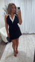 Step into holiday fun with this Sleeveless Lapel Collar Double Breast Mini Dress. Its sharp collar and contrasting details add a playful twist to classic tailoring, making it perfect for festive gatherings. Flatter your silhouette while standing out in style—your next holiday event just found its showstopper.