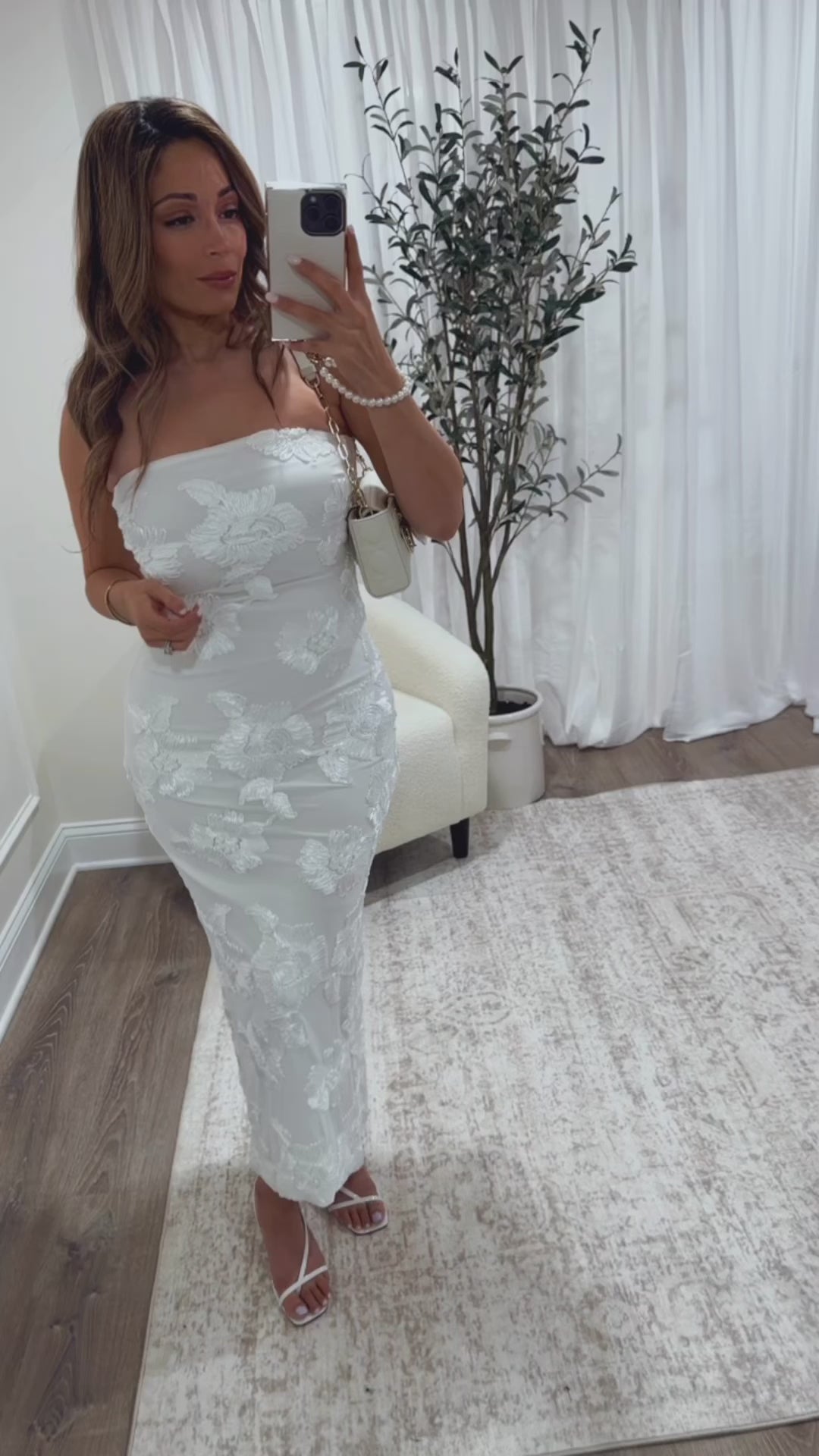 Our Purely Yours 3D Floral Strapless Dress brings a playful touch to elegance with its eye-catching 3D floral details. This strapless design beautifully showcases your shoulders, creating a fun and flirty silhouette perfect for turning heads at any event. Embrace texture and charm in one unforgettable dress!