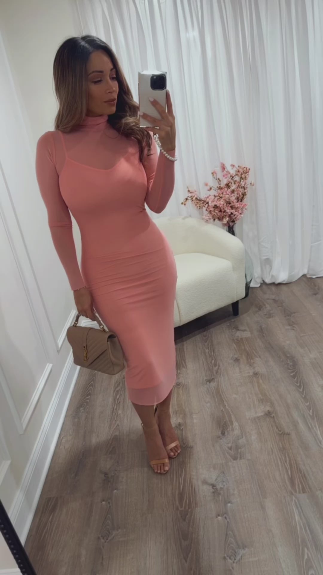 Get ready to turn heads in our new Social Season Bodycon Mock Neck Mesh Dress! With a figure-hugging silhouette and long mesh sleeves, this midi dress is perfect for your next event or night out.